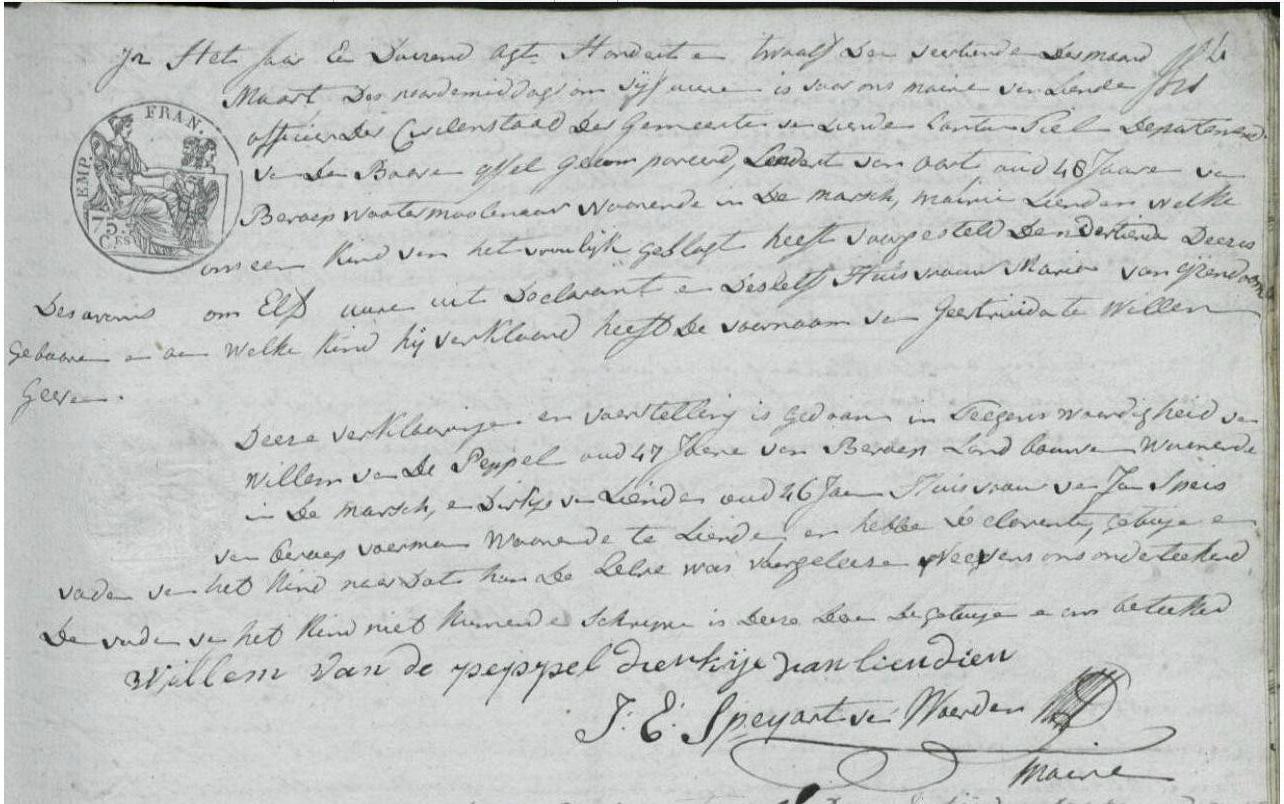 Leendert van Noort (Oort) Geboren: 1764 Overleden: 5 december 1851 — Lienden (Gelderland) |