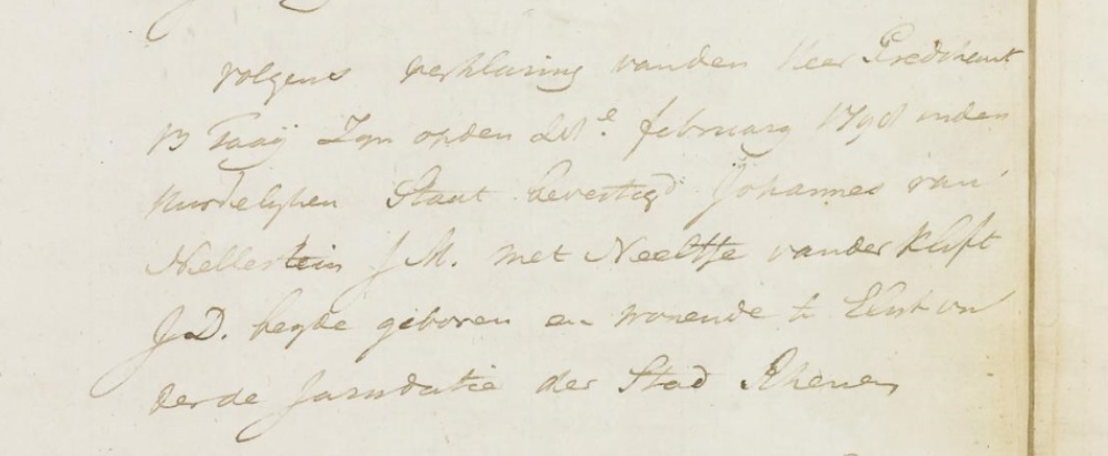 | Huwelijk van een kind | Evert van der Klift (Clift) — Helena van Nellestijn — Bekijk dit gezin 19 augustus 1781 (Leeftijd 46 jaar) Notitie: Evert en Helena gingen op 27-07-1781 in Rhenen (Ut) in ondertrouw |