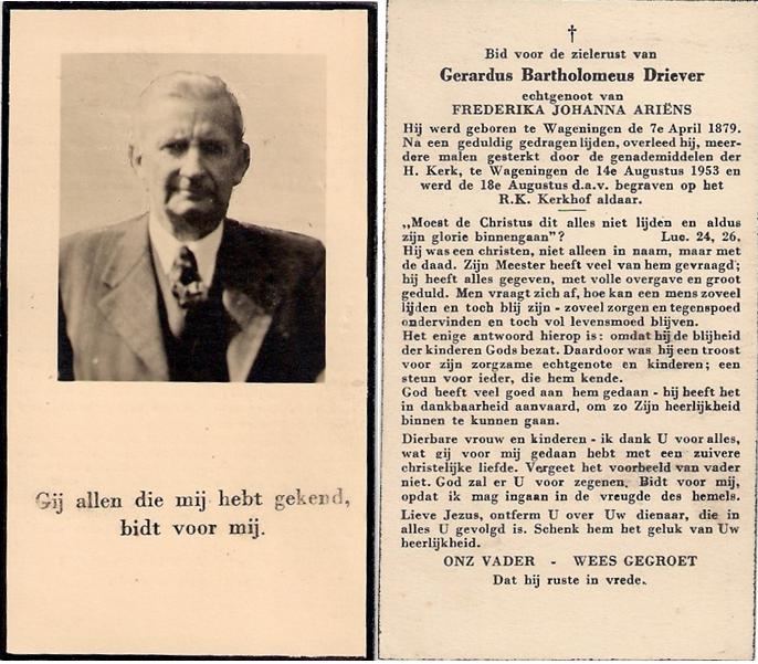 | Overlijden van een broer | Hermanus Johannes Driever 2 december 1918 (Leeftijd 39 jaar) |