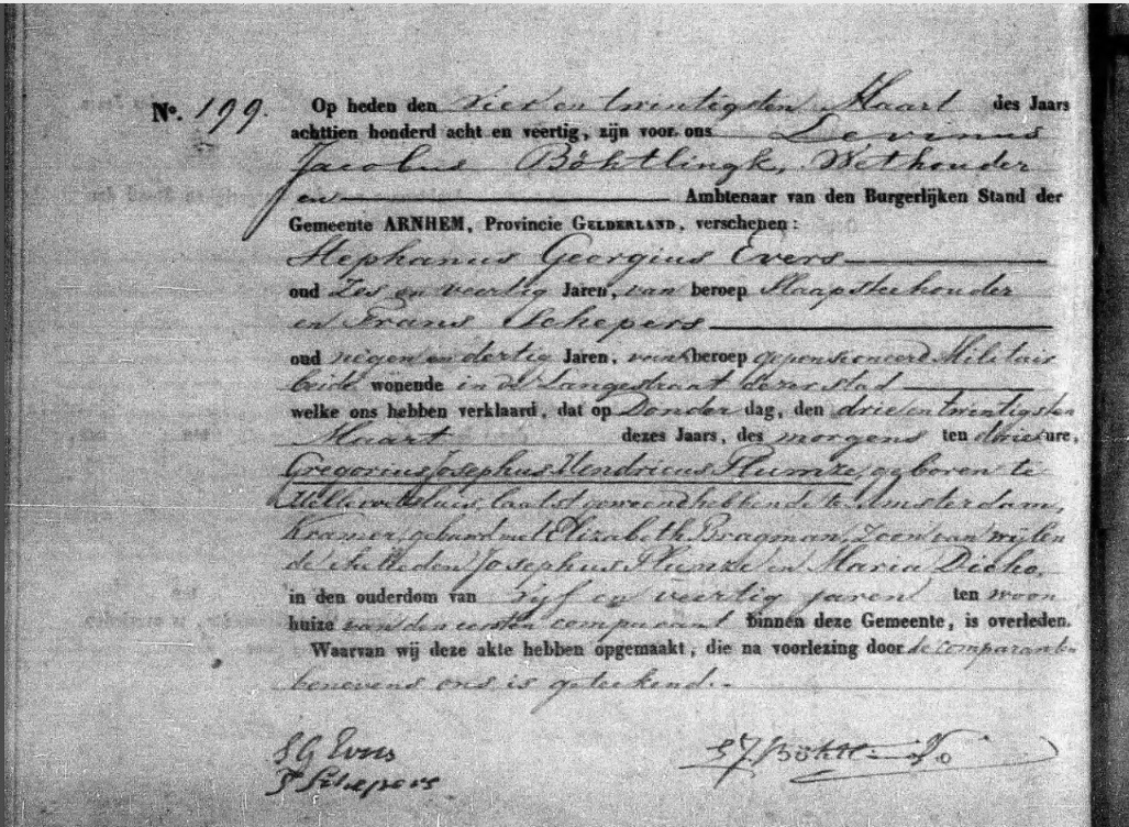 Gregorius Josephus Hendricus Plumier (Plumze) Geboren: 1803 — Hellevoetsluis (Z-H) Overleden: 23 maart 1848 — Arnhem (Gelderland) |