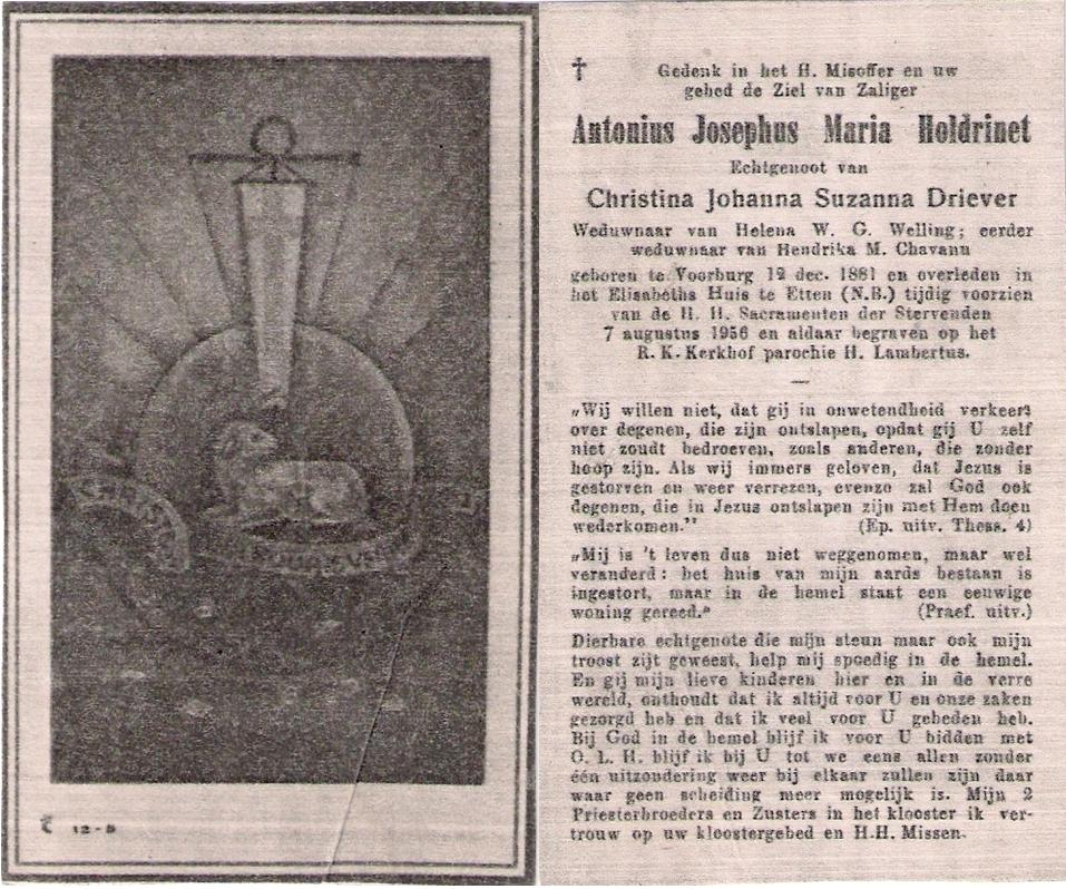 Josephus Anthonius Maria Holdrinet Geboren: 25 december 1873 34 31 — Voorburg (Z-H) Overleden: |