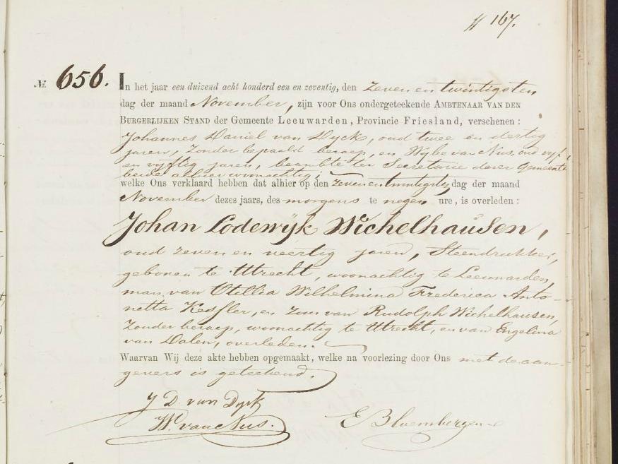 | Overlijden van een kleinzoon | Franciscus Wichelhausen 18 september 1878 – 06:00 uur (Leeftijd 56 jaar) |