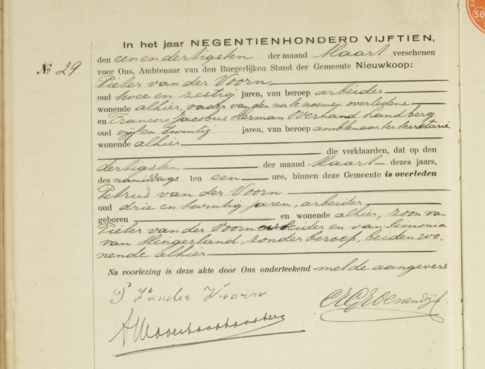 | Overlijden van grootvader van vaders kant | Willem van der Voorn 1 juli 1914 – 20:00 uur (Leeftijd 32 jaar) |
