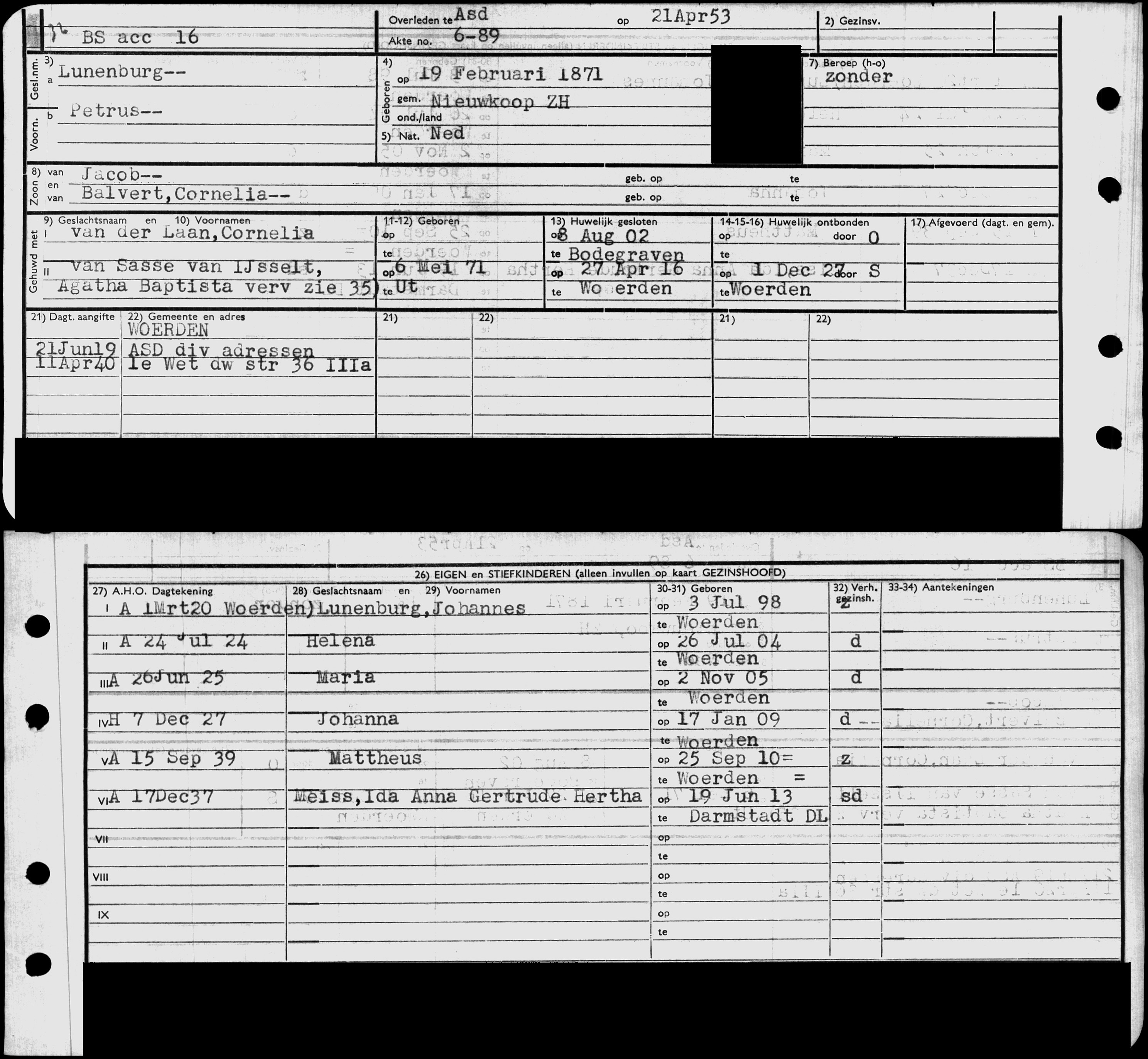 Johanna Lunenburg Geboren: 17 januari 1909 37 35 — Woerden (Utrecht) |