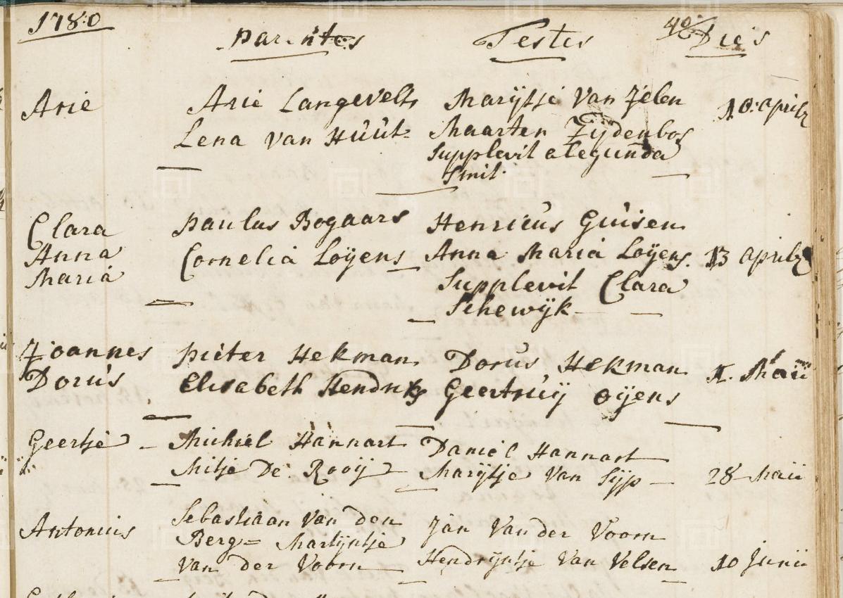 | Doop van een broer | Antonie ‘Anthony’ van den Berg 10 juni 1780 (Leeftijd 11 jaar) |