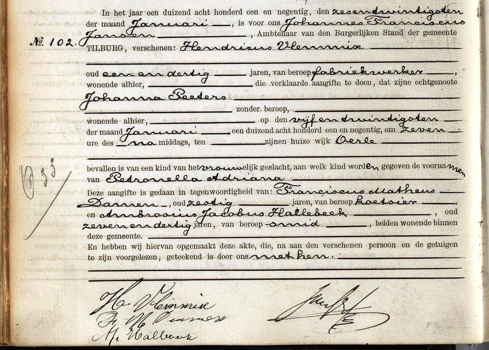 | Petronella Adriana Vlemmix Petronella Adriana van der Weijden | 25 januari 1891 | 135 | Tilburg (N-B) | 0 | 4 augustus 1959 | 66 | 68 | Tilburg (N-B) | F | YES | Y100 | R | ||||