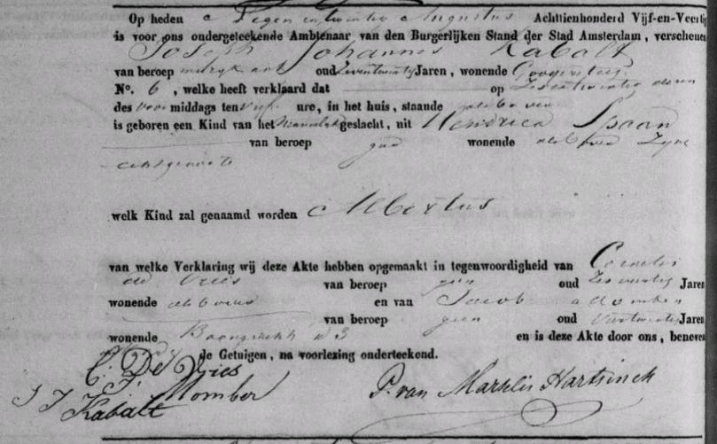 Geboorteakte Albertus Kabalt 26-08-1845 Amsterdam